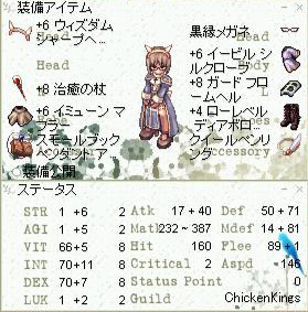 ステータスが3点70フラットになったら先にINTでSPとヒール量を補強、