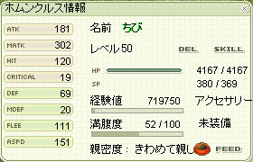 ちびが50になる直前、ケミもLvうp(ここは撮れていた)